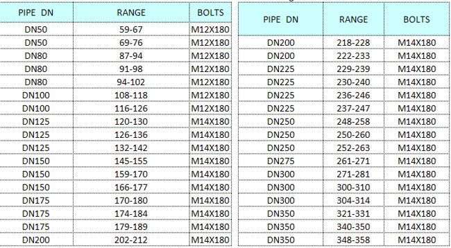 DN200 (8")≤OD<DN300 (12") 6 BAR